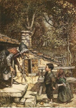 Children’s literature reflects our darkest fears about having no food or becoming food. A great famine struck Europe in 1314, where folklore has it that mothers abandoned their children, and, in some cases ate them. The brothers Grimm, researching fairy tales, discovered villages with cemeteries full of gravestones of young women who had died early, indicating mothers had in fact starved themselves so their children and husbands could eat. Versions of Hansel & Gretel already existed, like the C17th Italian Nennilo & Nennela, where a cruel stepmother forces her husband to abandon his 2 children in the forest, or a Romanian version where the wicked stepmother kills the little boy and forces his sister to cook him for the family meal. Tales such as these carry lasting food tropes that bother us to this day: times of plenty and want, the longed-for sugar of the gingerbread house, the evil female mother-figure, thinness as Hansel is tested to see if he is fat enough to eat yet, and ultimate solution ovens like the one Gretel pushes the witch into.